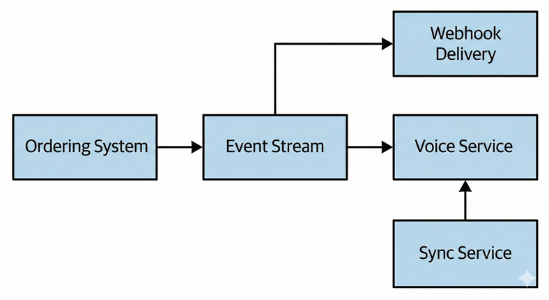 If you anchor the system on an event ledger, treat webhooks as delivery, and keep sync grounded in the ordering system’s truth, your voice agent becomes a reliable front door instead of a noisy experiment.